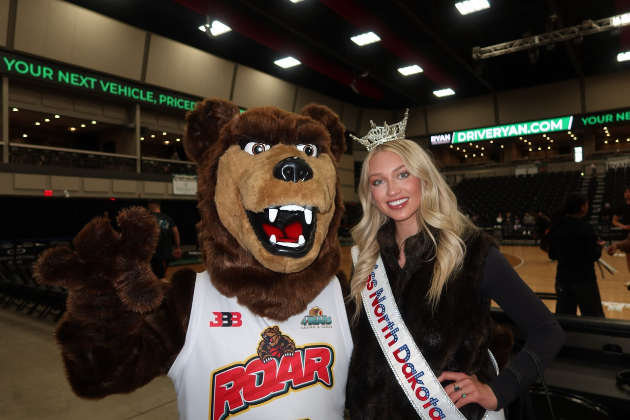 Miss North Dakota 2025 Kennedy Delap attended the first home games of the 4 Bears Roar over the weekend as they took on the Mesquite Desert Dogs. Miss North Dakota helped with halfcourt shots, took plenty of photos, and was the official game ambassador.